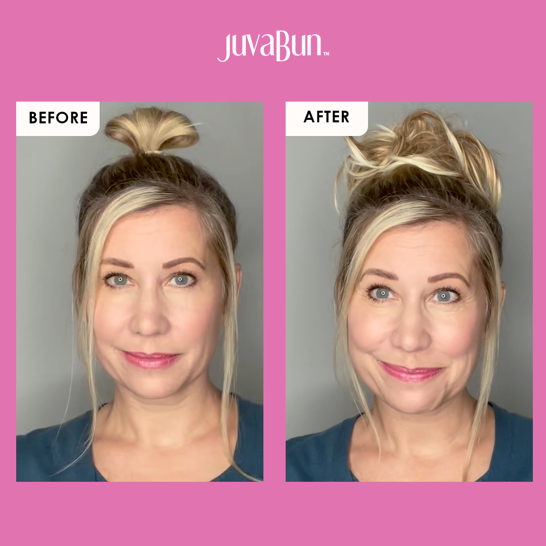 "I absolutely LOVE my JuvaBun messy bun. The color matches my hair perfectly and it is so easy to use. I put my hair in a bun and then wrap the JuvaBun like a ponytail holder and BAM!! I look put together in less than 30 seconds."